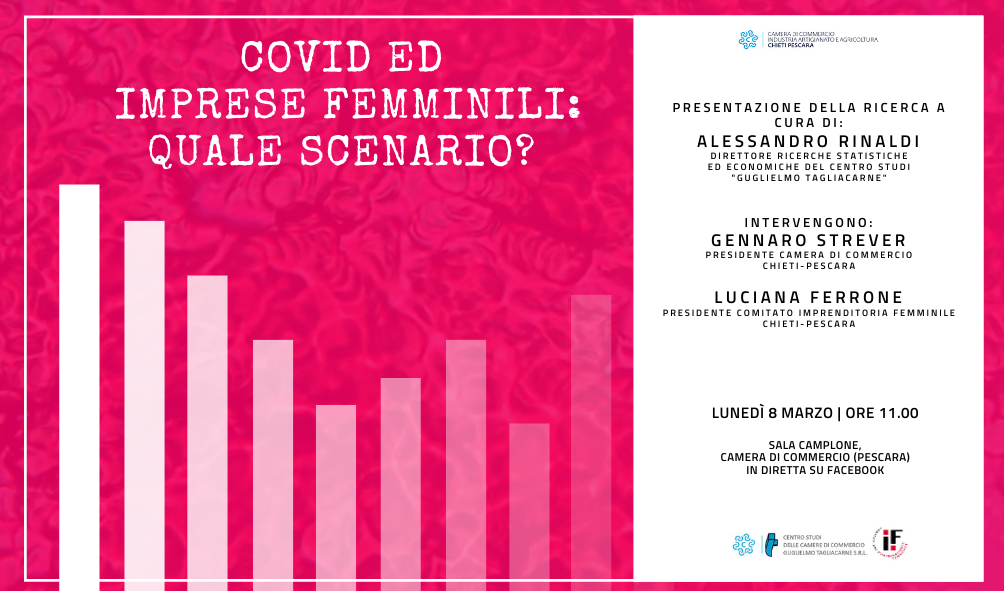 Uscire dalle situazioni di disagio e violenza grazie al lavoro: è questo il messaggio che intende lanciare la Camera di Commercio Chieti Pescara con la presentazione, programmata per lunedì 8 marzo, dello studio condotto dall’Istituto Guglielmo Tagliacarne sull’andamento delle imprese femminili a causa del Covid.