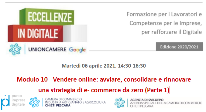 Segui il prossimo appuntamento di #EccellenzeInDigitale, martedì 6 aprile alle ore 14:30. dal tema “Vendere online: quanto ne sai? Scenario, strumenti e regole dei canali di vendita via web.