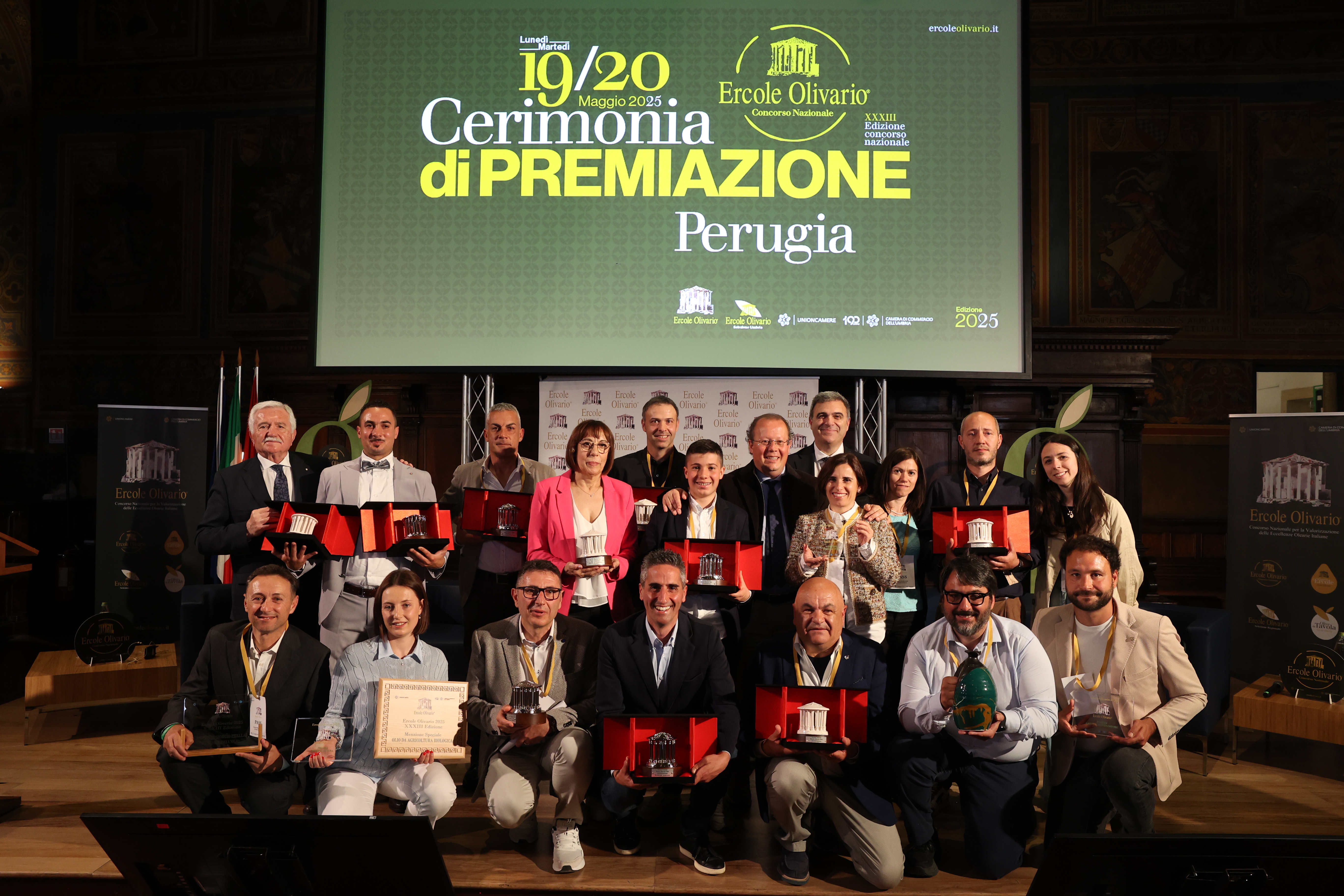 Pescara 21 maggio 2025 - Trionfo abruzzese alla XXXIII edizione del concorso nazionale Ercole Olivario, il prestigioso appuntamento dedicato alle eccellenze olearie italiane, tenutosi ieri a Perugia nella splendida cornice della Sala dei Notari del Palazzo dei Priori.