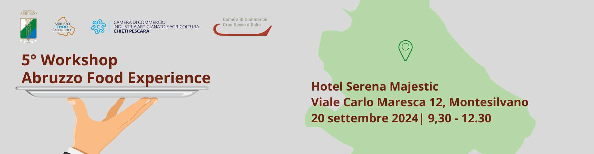 5° Workshop ABRUZZO FOOD EXPERIENCE, Hotel Serena Majestic, Viale Carlo Maresca 12, Montesilvano, venerdì 20 settembre 2024, dalle ore 9:30 alle ore 12:30.