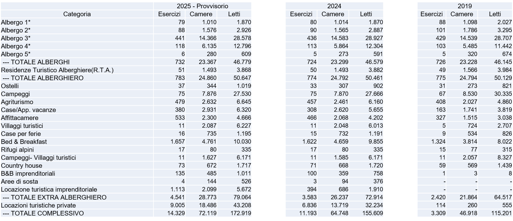 L’aumento registrato nel numero delle strutture ricettive e dei relativi posti letto disponibili non è da intendersi come unicamente legato a una crescita spontanea del settore, ma rappresenta il risultato di un processo di miglioramento della rilevazione statistica. In particolare, questo incremento è dovuto a due fattori principali: