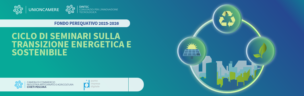 La Camera di commercio Chieti Pescara, con il Punto Impresa Digitale, realizza un ciclo strutturato di tre eventi info-formativi, dedicati rispettivamente ai temi della transizione energetica, della sostenibilità/ESG e dell’economia circolare.